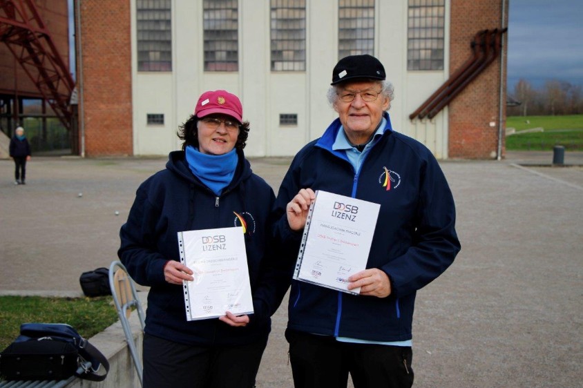 Drei Jahre nach ihrer Ausbildung als DPV Assistent*in haben Regina und Hanjo ihre Erfahrungen mit Vereinstrainings, Sportabzeichen-Abnahmen und Ligavorbereitungen zum Anlass genommen die Lizenzstufe auf Trainer*in C Breitensport zu erhöhen. Nach mehr als 200 Lerneinheiten, vielen Präsenz- und Videochat-Modulen und den Abschluss-Lehrproben kam am 17.12.2020 die Lizenz. Diese kam ohne Treffen der erfolgreichen Absolvent*innen, sondern den Coronazeiten angemessen ohne Glanz per E-Mail. Die beiden freuen sich - wie man sieht - trotzdem.