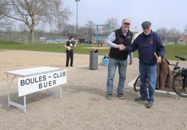9 Mitglieder des BC Buer wollten ihr Wissen über den für Jung und Alt geeigneten Boulesport an den Mann bzw. die Frau bringen. Bis zum großen Andrang wurde auf den 2 Bahnen schonmal der Boden getestet und für gut befunden. Gerade für Anfänger bzw. Hobbyspieler ist dieses Gelände sehr geeignet. Eine Bank zum Ausruhen befindet sich in unmittelbarer Nähe. Die parkähnlich gestaltete Anlage bietet aber noch jede Menge anderer Bewegungs-