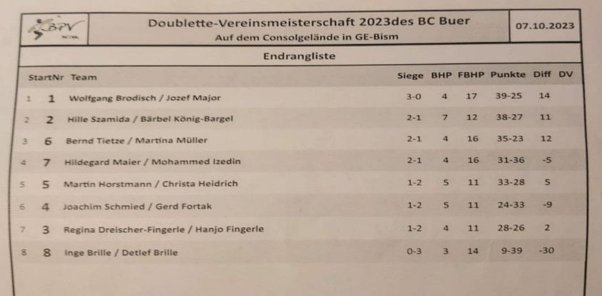 Hier die Endrangliste: