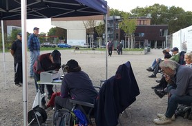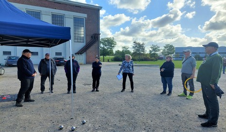 Allerdings galt das nicht auch unbedingt für die Turnierleitung. Die Sonne blendete und trotz rasch aufgebautem Pavillon spiegelte sich so einiges auf dem Bildschirm des Laptops, so dass es Probleme gab die Auslosungen auszudrucken. Mit vereinten Flüchen, Tipps, Kabelverbindungen unterbrechen und wieder anschießen und Neustarts klappte es dann doch, so dass unsere liebe Bärbel gegen 11.15 Uhr eine kleine Ansprache halten konnte.