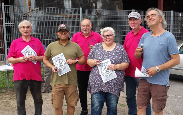 Um 16:15 Uhr standen sich Gabi Hochheim, David Salih, Armin Rund und Wolfgang Brodisch, Heiner Hojnacki, Volkmar Erwig im Finale gegenüber. Unter den Augen der restlichen Spieler/-innen wurde auf dem schwierigsten Geländestück des Platzes vor dem südlichen Maschinenhaus um jede Kugel gekämpft. Es ging Pünktchen für Pünktchen hin und her. Mit einem knappen 13:11 gingen die großen Pokale an die neuen Vereinsmeister Gabi, David und Armin. Wolfgang, Heiner und Volkmar konnten aber die kleinen Pokale einstreichen. Sie lagen in der Gesamttabelle mit einem Buchholzpunkt und 11 Spielpunkten vor den Drittplatzierten Roman und Nadja Kotlovski mit Jürgen Dembowski.