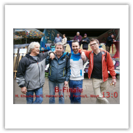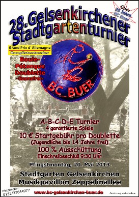 Das 28. Stadtgartenturnier fiel in diesem Jahr ein wenig beschaulicher aus. Auf Grund der schlechten Wetterprognosen fanden sich nur 62 Teams ein. Das Wetter war aber gar nicht so schlecht. Ab 15:00 Uhr fand sogar die Sonne den Weg in den Stadtgarten. Man sah auch nur strahlende Gesichter. Der Tag hat wohl allen Teilnehmern gefallen. Wir können uns glücklich schätzen, dass die Boule Spieler die gekommen sind ziemlich hochkarätig waren. Neben sehr vielen Belgiern waren dieses Jahr auch etliche Teilnehmer der deutschen Meisterschaft Doublette direkt aus Tromm angereist. Das hat unser Turnier wieder sehr interessant gemacht hat.