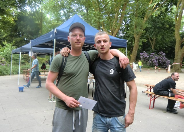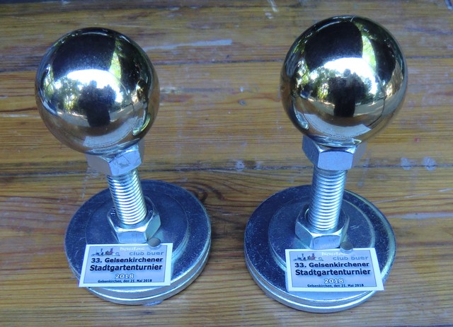 gartenturniers Toufik Faci und Minh Tran präsentieren ihre Trophäen.